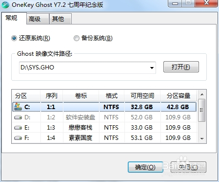 复制到D盘根目次后,双击OneKey打开,打开泥常久后会强痕呈现一个框,记得选择C盘,安装系统默认也是C盘,按照图的第二步找到适才复制亲娃到D盘根目次下的.GHO镜像文件。