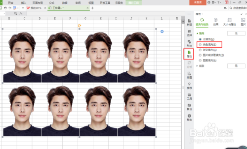然后选中布景区域为透明的照片,然后点击右边的属性按钮,然后选择纯色填充。