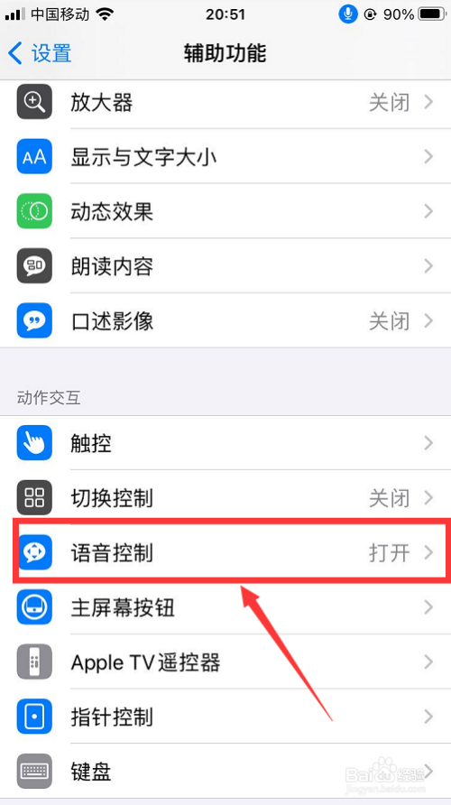 进入到鬼级辅助功能菜单后,下滑找到“语音节制”,点击进入。