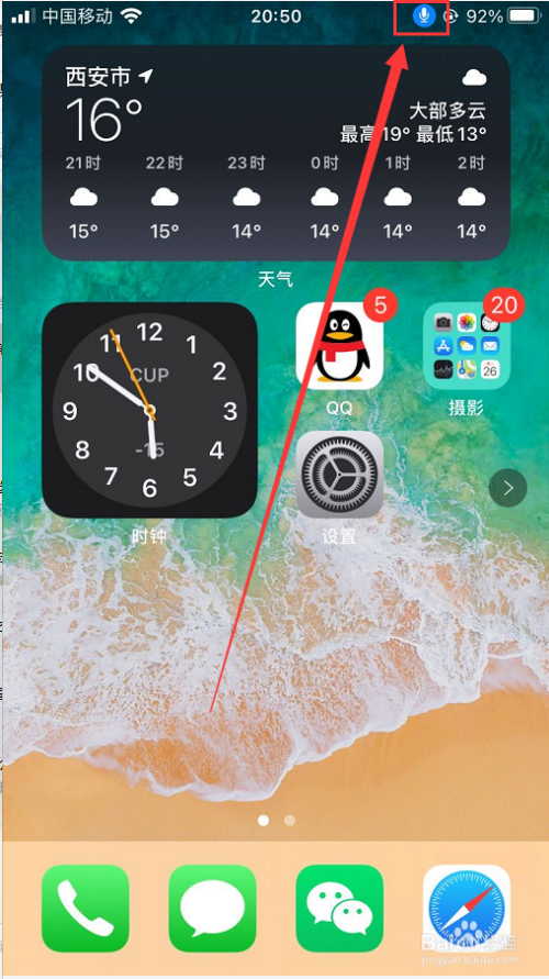 我们在屏幕右上方看到话筒标记,这是“语音节制”功能开启的标记。