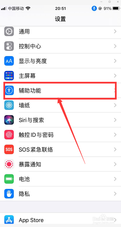 进入到设置菜单后,下滑找到“辅助功能”,点击进入。