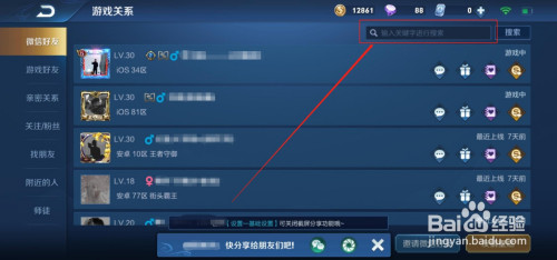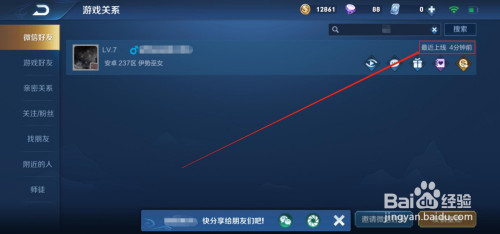 6、搜刮出来后,可以看老友列裕联表行中的右侧,会有一个时候;若是是组队中或游戏中,申明此刻正在线