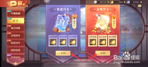 采办月卡后,即可天天获取更多元宝。