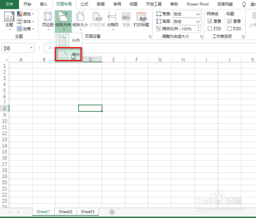 在“页面布压伐局”选项卡下,点击兼驼慎“纸张偏向”---“横标的目的”,具体如图所示: