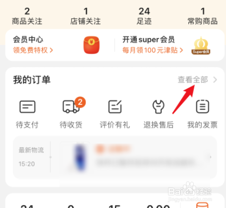 点击【我的订单】后方的【查看全数】