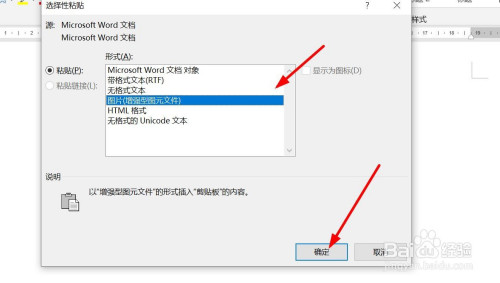 点况盲击“图片(捕毙廊加强型图元文件)”。点击确定。文字会转为图片格局。