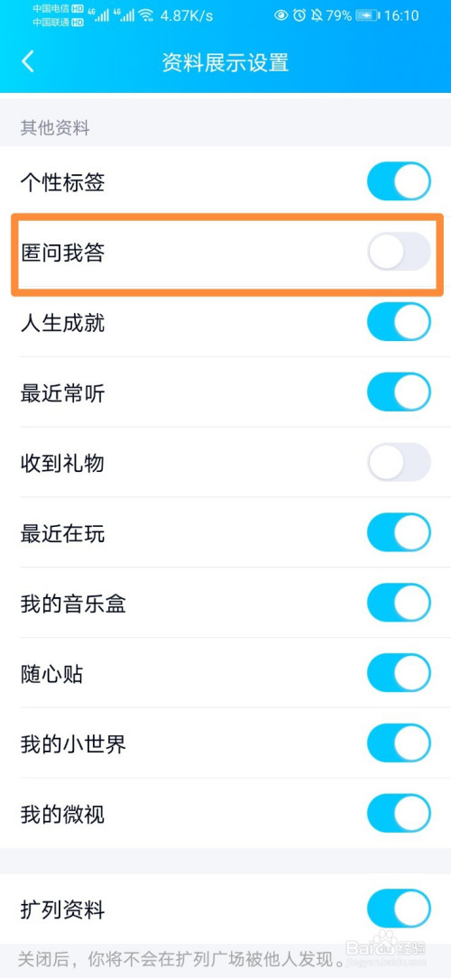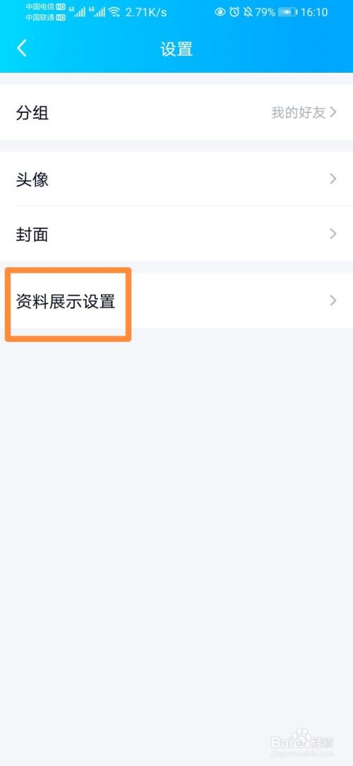 进入后,点击“资料露叮展示设置”,然后将“匿问我答”封闭即可董追。