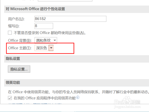 在【PowerPoint选项】下的【Office本家儿题】下选择【深灰色宙互】;