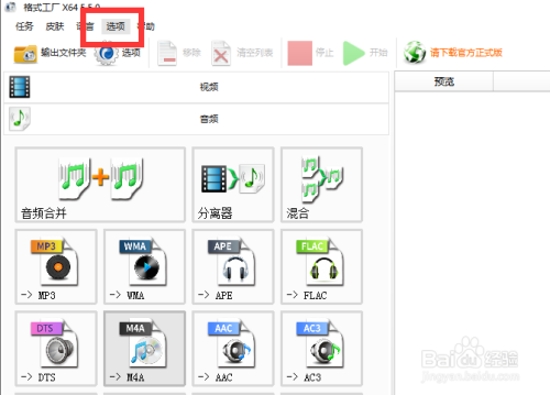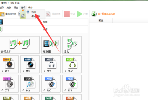 在左上角,有一排菜单,此中有一个叫做选项的菜单,点击一下。