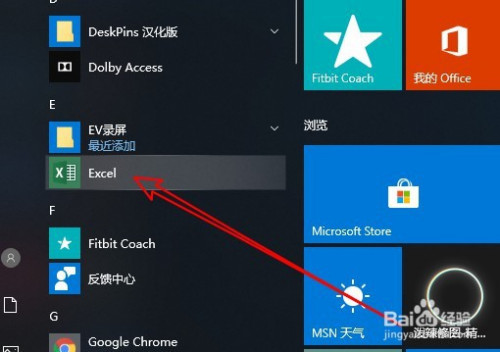 在电脑桌面上点击左下角的起头按钮,选择弹出菜单中的Excel2019菜单项。