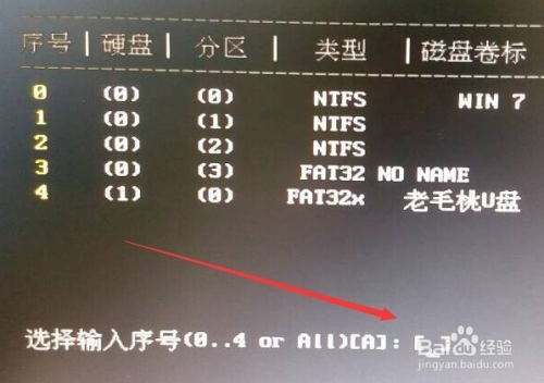 选择您Win10安装的磁盘,然后把它前面的序号输入到下面。再回车。