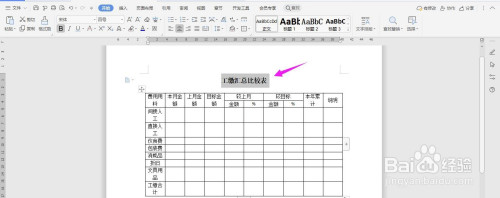 在表格上面输入“工缴汇总比力表”字率季体加粗、居中、调大,这样表格就建造完当作了
