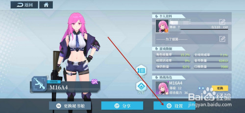 三.进入相关界面之后,然后点击右下角的【设置】,里面可以设置游戏的一些设置装备摆设。