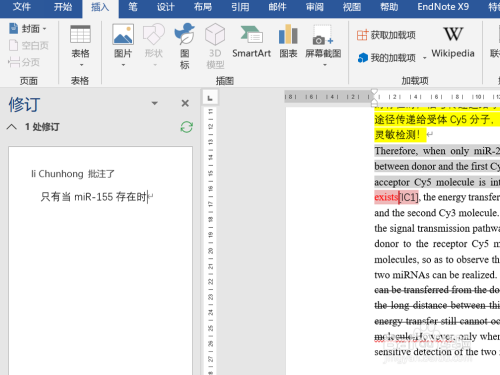 在【修订】窗口输入想要成立的批注内容;这样再次阅读该文档时,就可以看到成立的批注了!