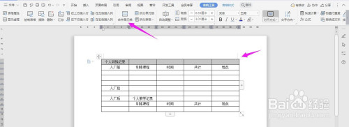 在表格上面输入“小我练习数学记实表”字体加粗、居中、调大,这样表格就建造完当作了