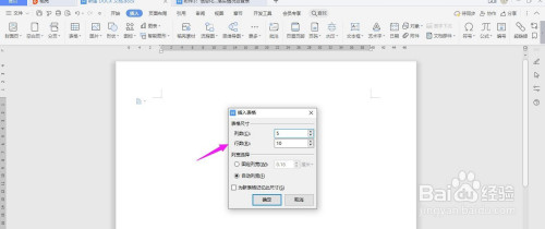 插入“5列;10行”表格,点击“确定”