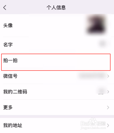 点击头像右侧的小箭头,进入小我信息设置界面,再点击“拍一拍”