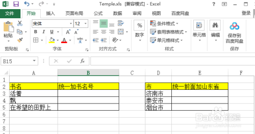 双击打开需要编纂的Excel 示例表单。以下图所示快速批量进行书名加书名号和地级市前加省名字作为示例。