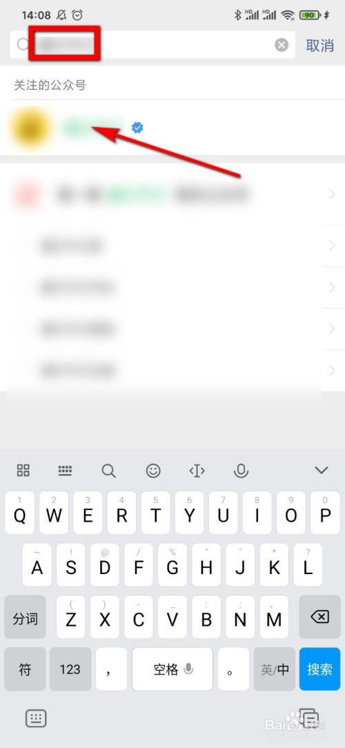 在搜刮栏输入想要查找的公家号,并点击搜刮成果即可。