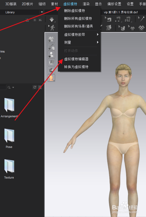 点击上方东西栏中的虚拟模特——虚拟模特编纂器。