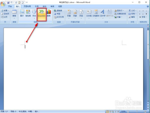 进入WORD2007本家儿页面后,点击左上方菜单栏【插入】。