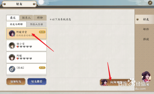 然后我们选择阿暖,点击标的目的她提问太白攻略。