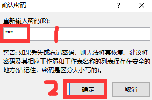 然后再点击【确认密码】,将密码反复输入一遍,点击【确定】即可完当作单位格的锁定。