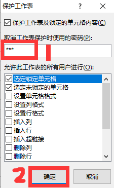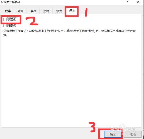 如下图所示,依次点击【设置单位格格局】弹窗中的【庇护】-->【锁定】-->【确定】。