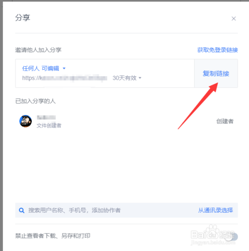 获得分享链接,复制链接,发送给老友。经由过程打开链接一路编纂文档。