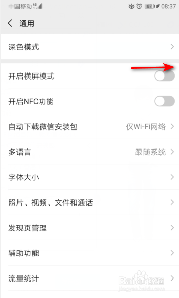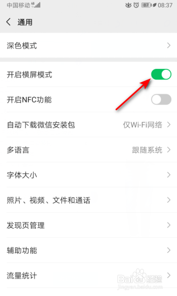之后将开启横屏模式的滑动按钮标的目的右滑动。