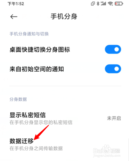 之后,点击数据迁徙的选项。