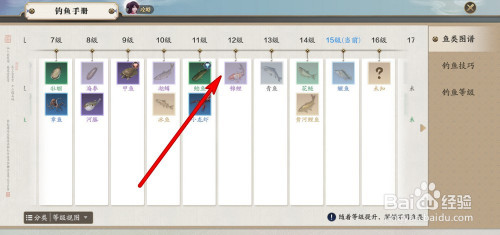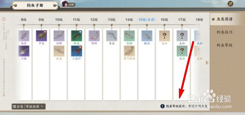 晋升垂钓品级可以解锁分歧品级的鱼类。