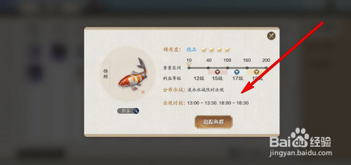 打开的界面查看呈现的水域和时候。按照这个去选择垂钓。