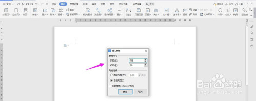 插入“10列;10行”表格,点击“确定”