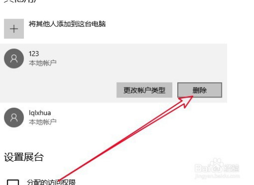 然后在其他用户列表中找到要删除的多余账号。