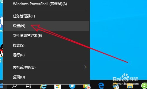 电脑桌面上右键点击左下角的起头按钮,选择设置菜单。