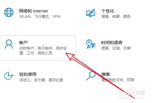 然后在打开的设置窗口,点击帐户图标。