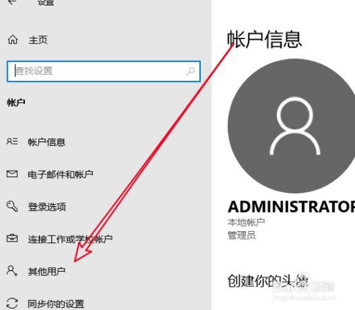 接下来在打开的账户窗口,点击左侧的其他用户菜单。