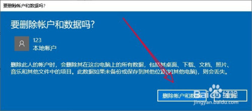 接着会弹出确认要删除的提醒,点击删除账户和数据的按钮。