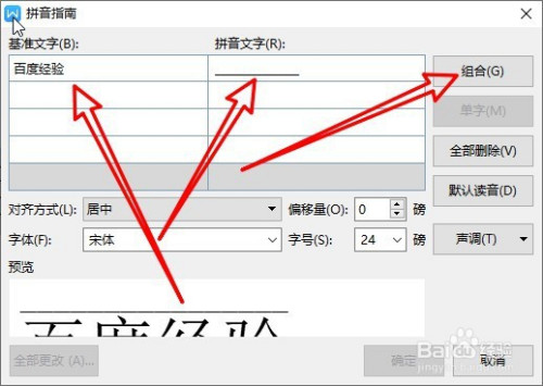 接着在拼音文字中输入横线,然后点击右侧的组合按钮。