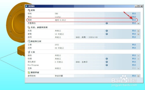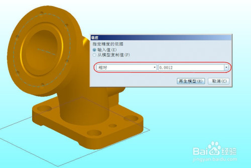 在【模子属性】对话框中,找到【精度】那行,然后点击右侧的【更改】,打开【精度】对话框。可以看到当前模子的精度为相对精度0.0012