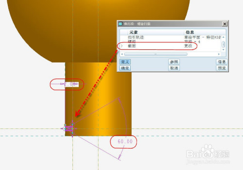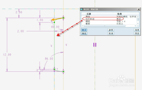 选择并界说【截面】,在草绘中草绘如下螺纹的截面草绘。