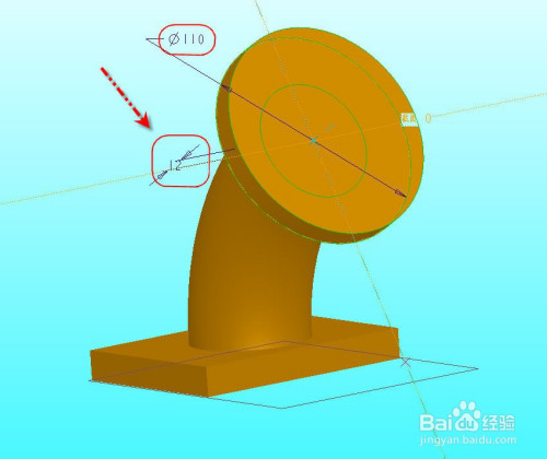 利用轮廓筋功能建立圆形凸台和底部平板的毗连幅板,然后利用孔特征建立圆台上的通孔