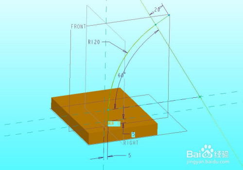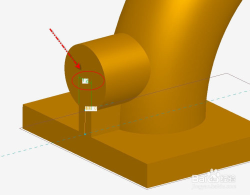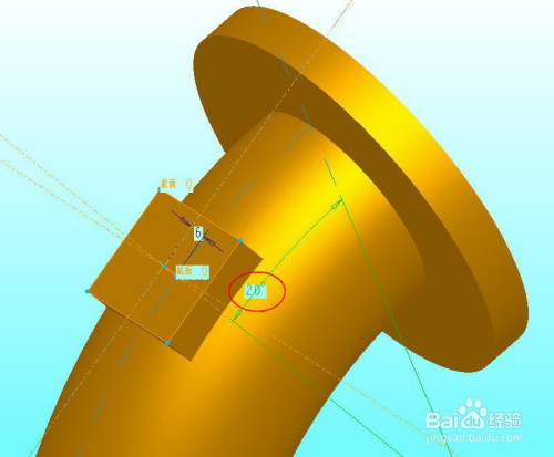 经由过程草绘带角度的直线段建立辅助平面,然后利用平面拉伸出背部的方形凸台。近似的方式拉伸出圆形凸台