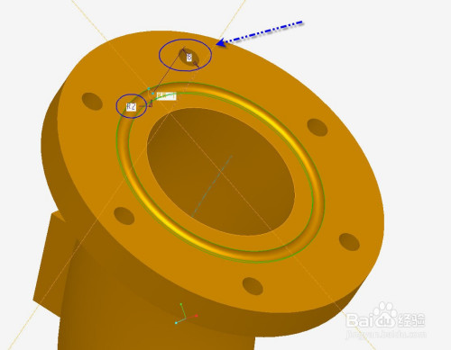 利用径标的目的孔功能建立上端圆盘上的通孔,然后沿圆周偏向平均阵列8个