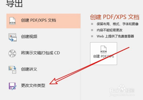 接着在打开的导出菜单,点击更改文件类型菜单项。