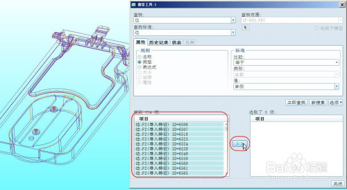 点击【封闭】按钮退出搜刮东西,此时适才添加到右侧列表的单侧边都已经处于选中状况。而且在图形区中以高亮加粗显示。如图所示