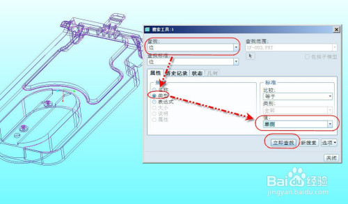 在【查找】下拉列表中选择【边】,【属性】选项组中选择【类型】,【值】下拉列表中选择【单侧】,点击【当即查找】
