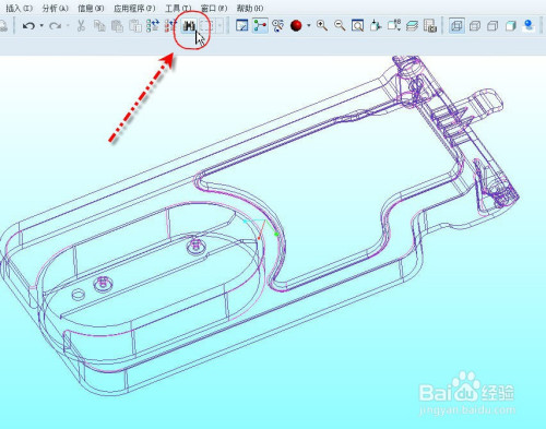 点击东西条上的【线框】按钮,把模子切换到线框显示模式