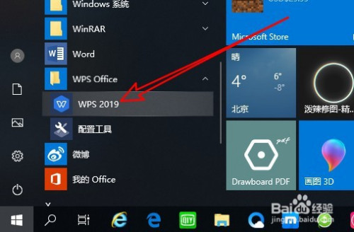 首先在电脑上打开开始菜单,点击WPS2019菜单项。